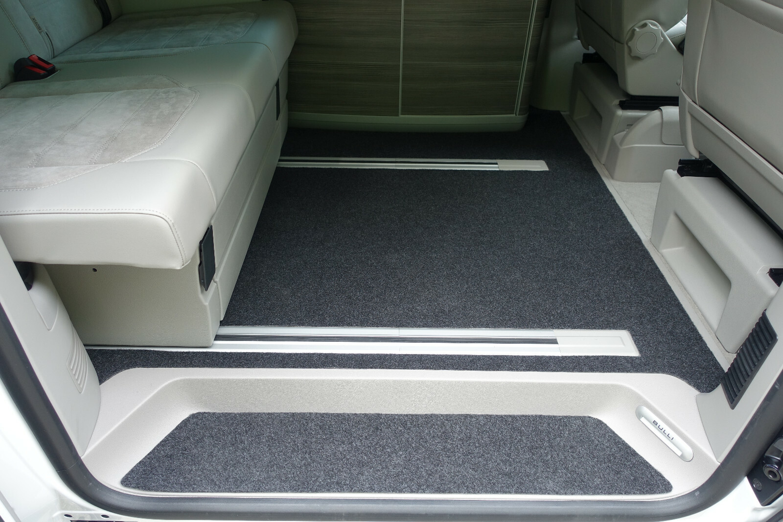 Premium fußmatten für vw t5, t6 und t6.1 multivan, caravelle ab bj. Biete den abgebildeten klappsitz, gummiboden und 8 stück abdeckungen für die sitzanker zum kauf an. Vw transporter t5 multivan teppich vorne 7h5863711. Der brandrup teppich für den fahrgastraum ist passgenau für den vw t6.1 / t6 / t5 multivan. Trittstufen teppich für multivan t5/t6.